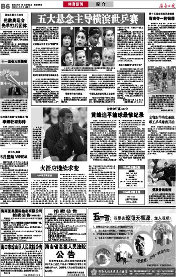 海南日报 体育新闻 综 合 014 2009-04-291 2009年04月29日 星期三