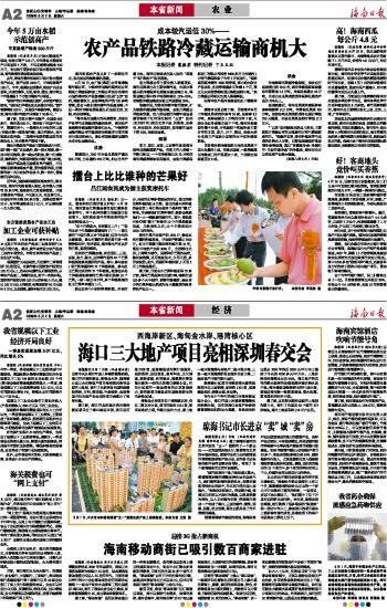 海南日报 本省新闻 002 2009-05-021 2009年05月02日 星期六