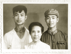 | 1963年蔡元培的侄外孙叶能源(右)与母亲蔡静真(中)和叔叔在浙江绍兴合影。 |