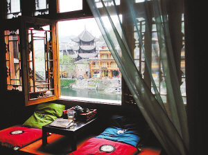 本想睡个懒觉,可是清早就听到啪啪的捣衣声,声声入耳,于是索性起了床。打开窗户,清风扑面,沱江两岸已经人来人往。泡一杯茶,翻了几页《边城》,坐在窗前发呆,时间原来是可以这样消费的。