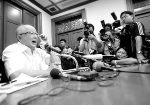 5月3日,泰国“黄衫军”领导人颂提·林通恭(左)出院后首次在曼谷举行新闻发布会。颂提当日称一些士兵参与了刺杀他的阴谋。颂提乘坐的轿车4月17日在曼谷遭到不明身份武装人员枪击,他本人头部受伤,住院治疗,4月25日出院。 新华社/路透