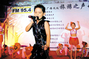 5月1日晚,海口广播电视台FM95.4城乡经济广播改版旅游之声开播仪式在海口上邦·百汇城举行。我省知名音乐人和旅游之声全体主持人登台表演了精彩的节目,赢得众多观众驻足观看。 童郜 摄