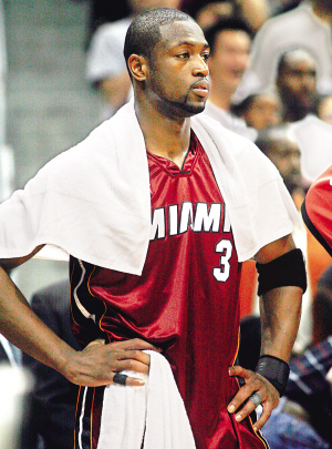 4日,热火队被淘汰,韦德神情黯然。 新华社发