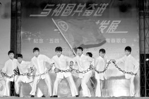 5月3日晚,海口市各界青年1500多人齐聚海口第一职中大操场,举行了一场“与祖国共奋进,与椰城共发展”纪念五四运动90周年青春歌会,弘扬“爱国、科学、民主、进步”的五四精神。 本报记者 苏建强 摄