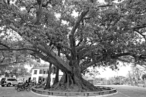 4月24日,昌江黎族自治县石碌镇片石村的村民将这棵830年的大叶雷公榕树上的各种寄生植物清除后,老榕树又恢复以前的生机盎然。 据悉,这棵大叶雷公榕树干上原本攀附各种寄生藤蔓、爬树龙等寄生植物,缠根绕茎、包裹寄树,这属于植物世界中残酷的“绞杀”现象。由于被寄生植物“绞杀”后负荷过重和营养不良,导致一些树干干枯。片石村村民利用建设文明生态村整治村容村貌的契机,将榕树上的各种寄生植物通通清除,现在老榕树又恢复了生机。 本报记者 李英挺 特约记者 曾高文 摄影报道