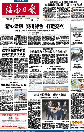 海南日报 头版 001 2009-05-061 2009年05月06日 星期三