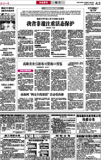 海南日报 综 合 003 2009-05-061 2009年05月06日 星期三