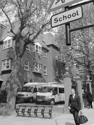 5月6日,行人从伦敦南汉普斯特德中学门口经过。英国健康保护局5日宣布:英国已有5所学校因发现甲型H1N1流感病例而暂时关闭。 新华社记者 曾毅 摄