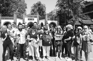 | 《熊猫回家路》多国演职人员持免费熊猫金卡游览都江堰后合影 |