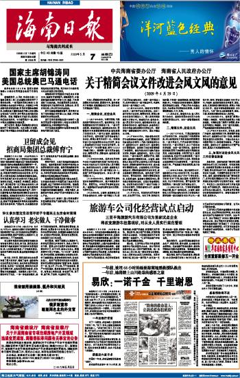 海南日报 头版 001 2009-05-071 2009年05月07日 星期四