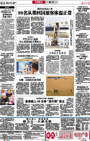海南日报 中国新闻 010 2009-05-071 2009年05月07日 星期四