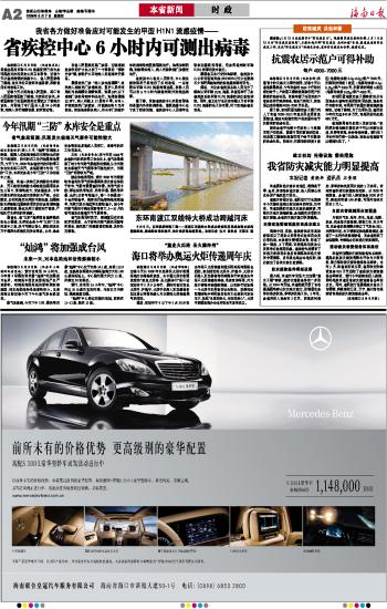 海南日报 时 政 002 2009-05-071 2009年05月07日 星期四