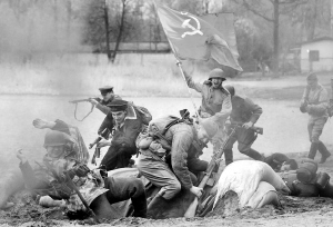 5月6日,在俄罗斯圣彼得堡,俄罗斯历史俱乐部成员身着苏联和德国纳粹的服装参加一场模拟第二次世界大战战事的活动。 新华社/路透