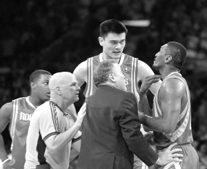 姚明也谈到了自己陷入犯规麻烦的情况。“前两次犯规,我没什么可说的,第三次犯规来得很快,我都不知道是怎么犯规的,但是他们吹了就是吹了,我应该打得更合理一些,移动要更快些”姚明说。