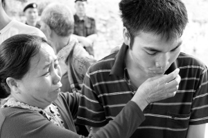 | 犯罪嫌疑人韩某的母亲,含泪将儿子交到警方手中。 本报记者 李关平 摄 |