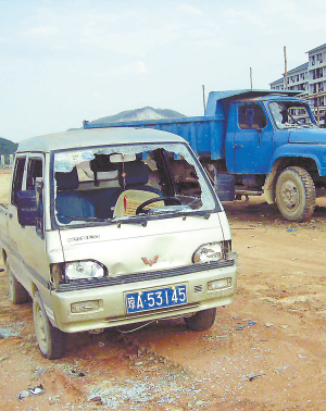 | 被烂仔砸烂的汽车。 本报记者 古月 摄 |
