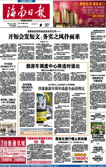 海南日报 头版 001 2009-05-081 2009年05月08日 星期五