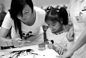 | 5月7日,在地震中失去左臂的郑洁(左)在四川省人民医院地震康复中心内画画。 |
