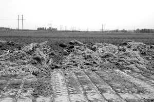 林州市陵阳镇为突击修路 镇政府连夜 铲平几十亩小麦 为突击修路,林州市陵阳镇在未向当地群众提前“打招呼”的情况下,于5月1日凌晨3点左右用铲车强行铲平几十亩小麦。5月7日下午,赶到现场的记者看到,成片的麦子被连根铲断后堆在两边,中间光秃秃的耕地被压成一条路基。由于已经过去了几天,铲掉的麦子开始干枯,但铲车履带碾压的痕迹依然清晰可见。 新华社发