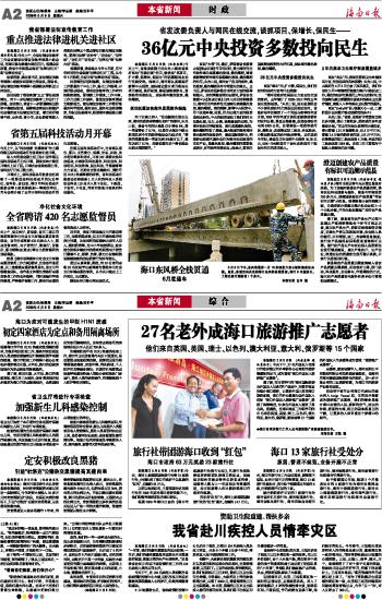 海南日报 本省新闻时 政 002 2009-05-091 2009年05月09日 星期六