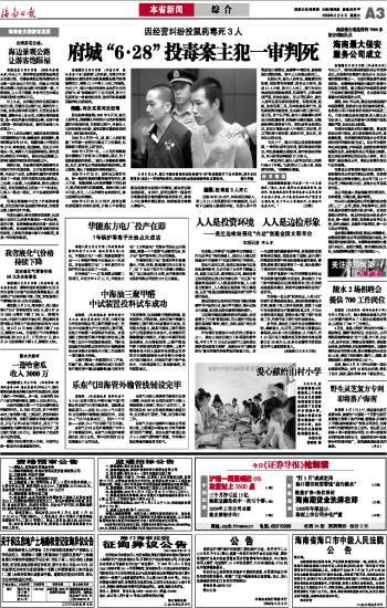 海南日报 本省新闻 综 合 003 2009-05-091 2009年05月09日 星期六