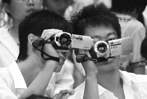 | 酷爱高科技的“90后”,用摄像机记录校园生活。 海南日报记者 林萌 摄 |