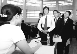 | 2009年4月的一场招聘会上,“90后”的中职毕业生在应聘。 海南日报记者 林萌 摄 |