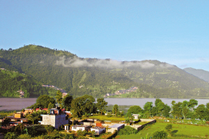 到博卡拉已经是晚上十点多了,出租司机热情介绍我们在费瓦湖边的旅馆住下。次日,我还是一大早就爬上旅馆的天台。放眼望去,在市区南侧翠绿的森林遮掩中,费瓦湖静静地躺在那里,湖面宽阔,向南延伸很远。