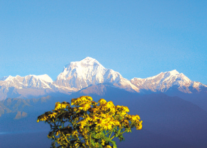 雪山列队:道吉拉里(海拔8172米)、安纳普尔纳主峰(海拔8091米)、安纳普尔纳南峰(海拔7219米)和鱼尾峰(海拔6997米)。