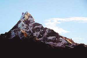 尼泊尔圣山:尽管鱼尾峰并不高,海拔6997米,但在技术上说还是一座处女峰。因为她在尼泊尔人眼里最神圣,尼泊尔政府也禁止登山者攀登。