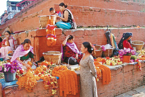 | 街头的妇女在卖拜神时用的鲜花。 |