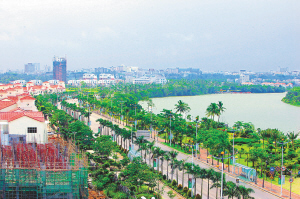 | 琼海市万泉河畔,房地产建设风生水起。 本报记者 张杰 摄 |