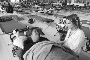 9日,在美国圣巴巴拉,山火受灾民众在临时庇护所里休息。美国加利福尼亚州的山火已造成百余所房屋被毁,3万余人被迫撤离。 新华社/法新