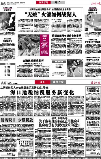 海南日报 体育新闻 006 2009-05-111 2009年05月11日 星期一
