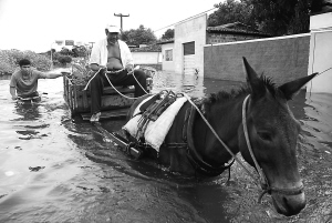 5月9日,在巴西北部的皮奥地区,当地居民在洪水中赶马车出行。 新华社/法新