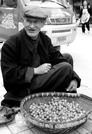 ④5月11日,宝兴县穆坪镇沿江路,老大爷和善地卖着樱桃。