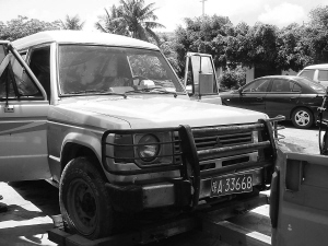 | ←犯罪嫌疑人使用的套牌三菱越野车。