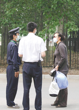 | 5月11日,被隔离者的亲友送来日常用品。当日,北京开始隔离与我国内地首例甲型H1N1流感确诊病例同机的乘客,隔离地是北京国门大饭店。