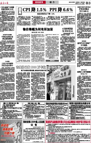 海南日报 财经新闻 011 2009-05-121 2009年05月12日 星期二