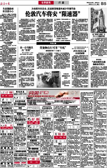 海南日报 世界新闻 013 2009-05-121 2009年05月12日 星期二