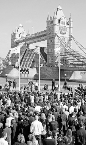 5月11日,英国伦敦塔桥一部电梯发生下坠事故,导致6人受伤。塔桥管理方、伦敦金融城公司介绍,这部电梯位于北塔。事故发生时,这部电梯处于上行状态,突然下坠大约3米。伦敦塔桥是伦敦地标性建筑,每天吸引大批游客参观。这是2008年9月26日拍摄的英国伦敦塔桥的资料照片。 新华社/法新