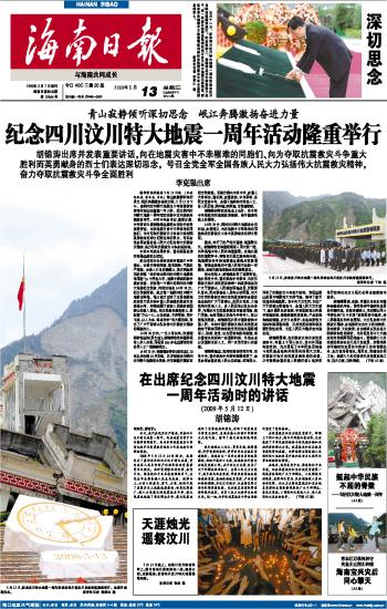 在出席纪念四川汶川特大地震一周年活动时的讲话