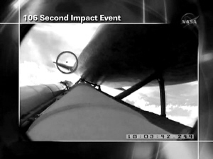 地面控制中心科学家说:“情况看起来并不严重,那些(隔热)瓷砖很厚,刮痕看起来很小。”地面控制中心要求宇航员们对连接航天飞机右翼和机身的部位详加检测。