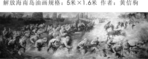 近日,一幅再现当年解放军登陆海南岛恢弘战斗场面的巨幅油画《解放海南岛》在省博物馆的《庆祝新中国成立60周年暨海南“五一”职工美术展》上亮相,吸引众多参观者驻足观看。这幅油画长5米、高1.6米,是油画名家黄信驹用两年多的时间精心创作出来的。