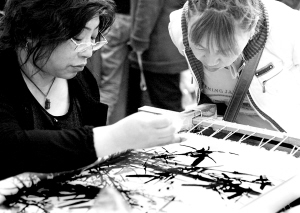5月15日,一位刺绣作者在展示大会上向参观者介绍刺绣技术。当日,“牵手就业”女大学生、失业妇女创业项目展示大会在长春市举行。活动针对女大学生、失业妇女的就业特点,推出手工制造类、加盟类、培训类等近百个创业项目。 新华社发(姚琪琳摄)