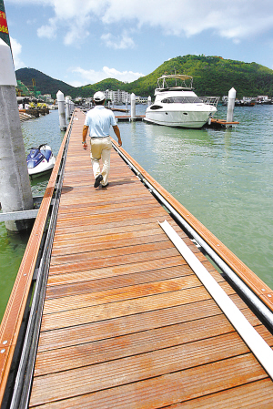 | 三亚游艇基地———鸿洲国际游艇码头一期建设的72个游艇泊位5月15日全部竣工。 本报记者 程范淦 摄 |