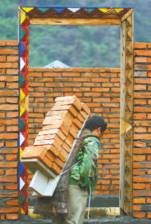 | 有了门也就有了家。硗碛乡仁朵安置点,藏族同胞重建家园。 |