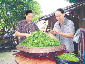 | →水满上村村民正在挑拣刚刚采摘回来的茶青。 |