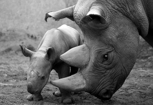 ↑5月18日,在英国切斯特市的一个动物园,一只出生刚4天的小黑犀牛依偎在妈妈身边。 新华社/路透
