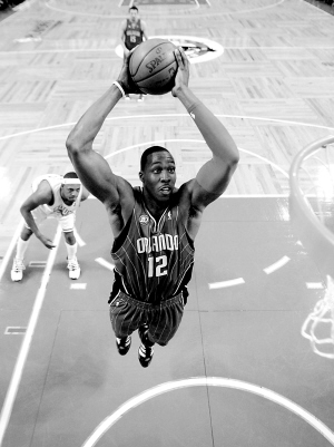 5月18日,在NBA季后赛东部半决赛第七场比赛中,魔术队客场以101:82战胜凯尔特人队,从而以4:3的总比分晋级东部决赛。 图为魔术队球员霍华德在比赛中灌篮。 新华社发